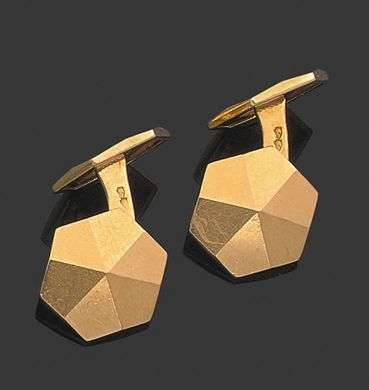 Paire de boutons de manchettes en or jaune 18k composés de motifs hexagona