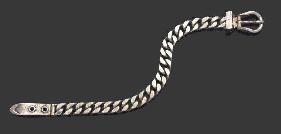 "Ceinture" Bracelet en argent. Signé et numéroté. Dans son écrin d'origine. Long: 21.5 cm - Poids brut: 49.6 g A silver bracelet by Hermès.