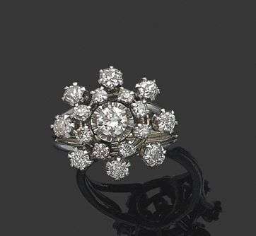 Bague "fleur" en or gris 18k sertie de diamants de taille ancienne et mode