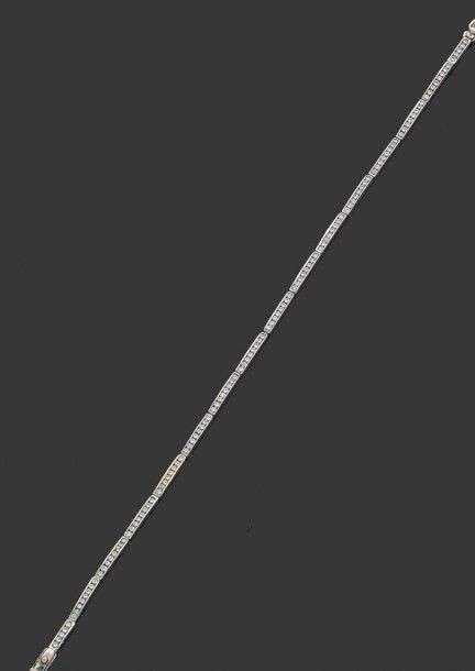 Bracelet articulé en or gris 18k serti de petits brillants. Long: 17 cm - Poids brut: 7.5 gr A diamond and white gold bracelet.