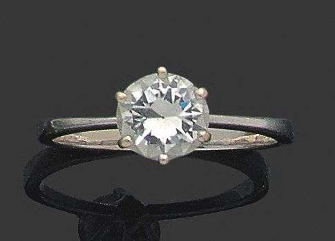 Bague en or gris 18k sertie d'un diamant solitaire de taille brillant. Poids du diamant: 1.25 cts env. Tour de doigt: 55 - Poids brut: 2.8 gr A diamond and white gold ring.