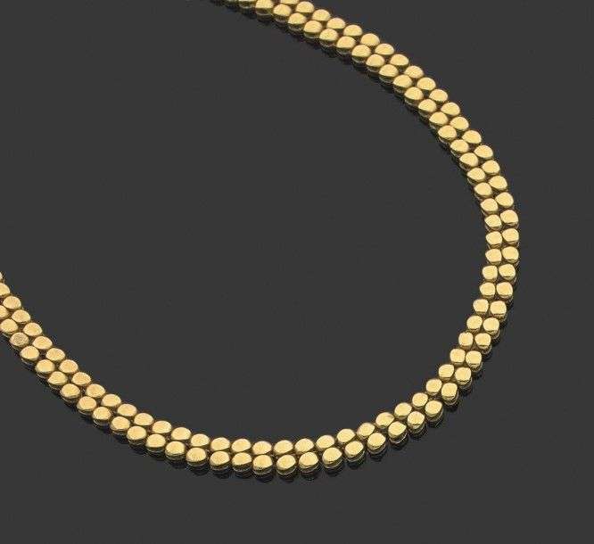 Collier articulé en or jaune 18k stylisant deux lignes de motifs ovales. Long: 43 cm Poids brut: 56.7 gr A yellow gold necklace.