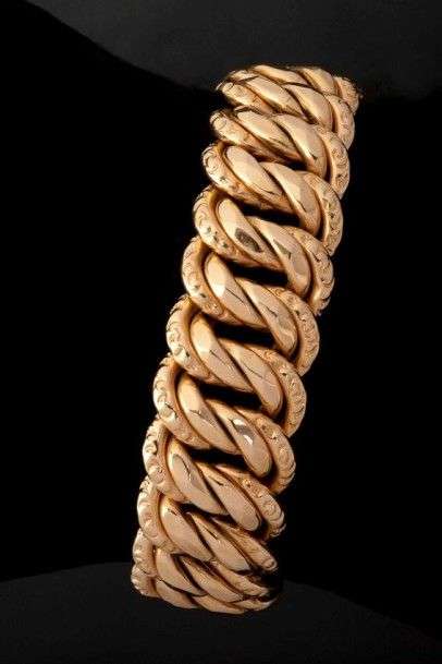 Large bracelet gourmette en or jaune 18k. Poids brut: 50.4gr A yellow gold bracelet.