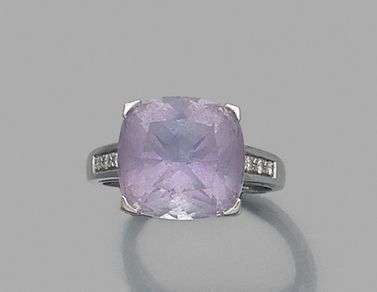 Bague en or gris 18k sertie d'une améthyste épaulée de brillants. Signée et numérotée. Tour de doigt: 55 Poids brut: 6.9 gr An amethyst, diamond and white gold ring by Mauboussin.
