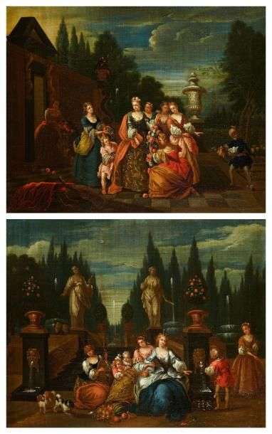 Elégantes dans un parc Paire de toiles 36,5 x 44,5 cm