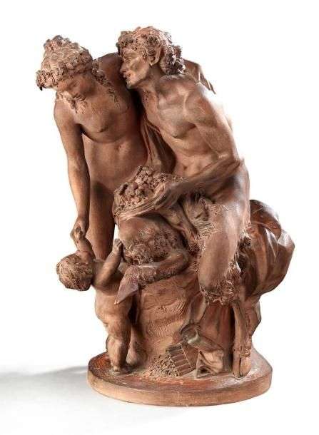 "La famillle du faune". Epreuve en terre cuite Style Louis XVI H: 45 cm