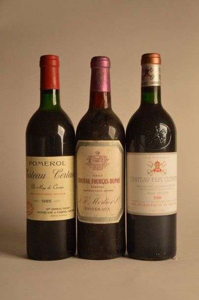 1 B CHÂTEAU PAPE CLEMENT CC Graves 1988| 1 B CHÂTEAU CERTAN DE MAY (H.E+) Pomerol 1985|1 B CHÂTEAU FOURCAS DUPRE (B.G| e.l.s| capsule estampée| très belle) Listrac-Médoc 1957