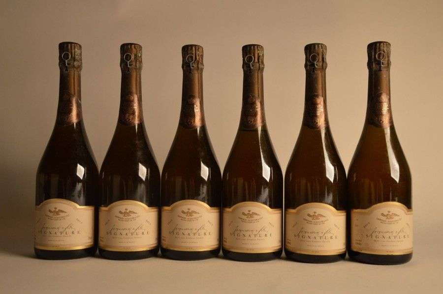 6 B CHAMPAGNE BRUT SIGNATURE (1 L.B| 1 e.t.h. légère| coiffes légèrement corrodées) Jacquesson 1981