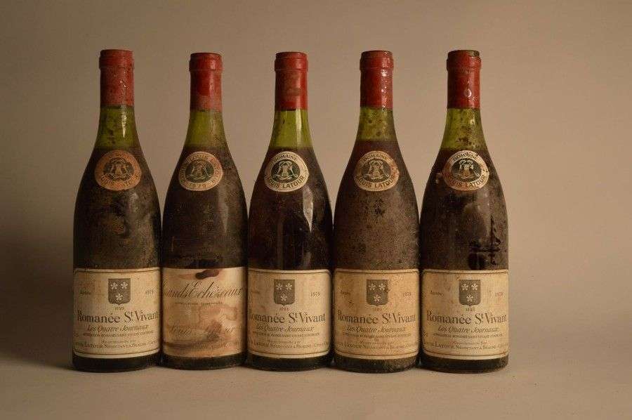 4 B ROMANEE ST VIVANT LES QUATRE JOURNAUX (Grand Cru) 2 à 3,5| 1 à 3,7| 1 à 4| e.t.h| capsules découpées sommet Louis Latour 1979| 1 B GRANDS ECHEZEAUX (Grand Cru) 3,5| e.t.h| clm.s| capsule découpée sommet Louis Latour 1979
