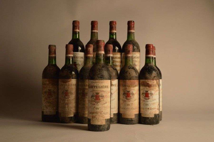12 B CHÂTEAU LA GAFFELIERE (4 B.G| 5 T.L.B| 1 H.E.+| e.t.h. à e.l.a| capsules découpées sommet) GCC1B St Emilion 1976