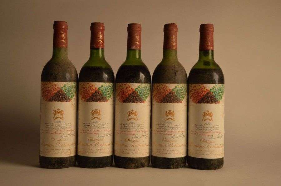 5 B CHÂTEAU MOUTON ROTHSCHILD (2 H.E| 2 M.E| 1 B.E.+| e.l.s| capsules découpées sommet) GCC1 Pauillac 1979
