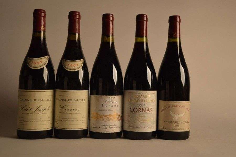 1 B CORNAS LES EYGATS (e.l.s.) Courbis 1999| 1 B CORNAS Domaine de Rochepertuis 2004, 1 B CORNAS Domaine de Fauterie 1997, 1 B SAINT JOSEPH Rouge Domaine de Fauterie 1997|1 B CROZES HERMITAGE Rouge (e.l.a.) Domaine du Colombier 2005