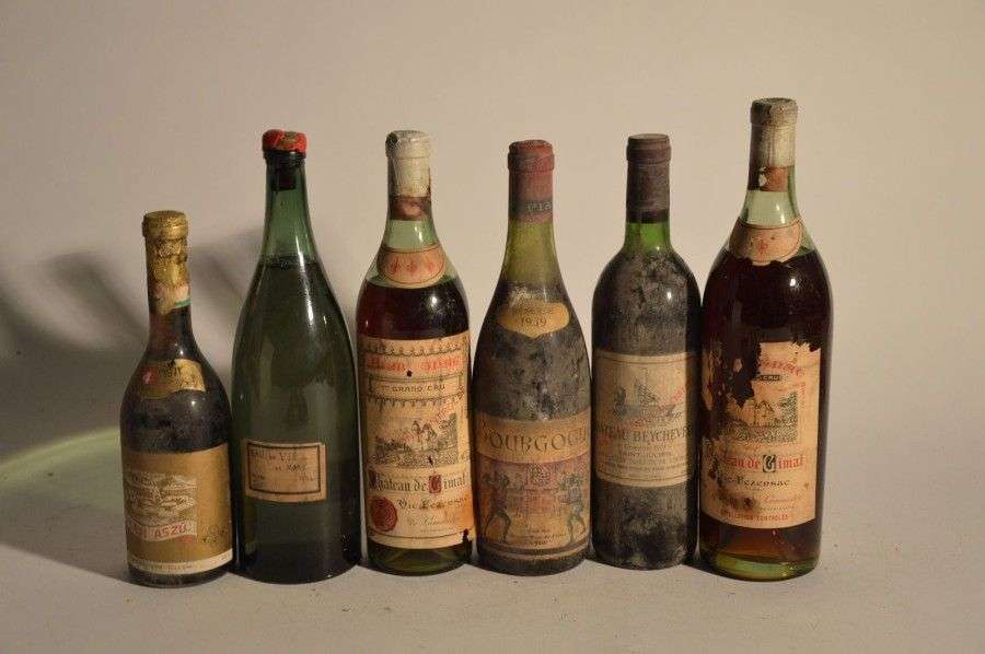1 B CHÂTEAU BEYCHEVELLE (T.L.B| e.t.h.) GCC4 St Julien 1979| 1 B BOURGOGNE Rouge (4| e.t.h| 1 accroc clm| c.s.) Piat P&F 1959|1 50 Cl TOKAJI ASZU 4 PUTTONYOS (e.l.a| c.s.) Palackozo 1971,2 B ARMAGNAC (M.B| 1 e.l.a| 1 e.q.i| c.s.) Château de Gimat NM, 1 B EAU DE VIE DE MARC (étiquette manuscrite) NM