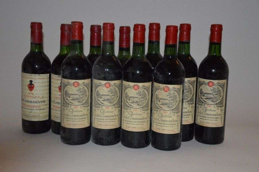 7 B CHÂTEAU DE LA COMMANDERIE (4 B.G| 1 T.L.B| 1 H.E.+| e.l.s| 1 c.a.) Lalande de Pomerol 1981| 4 B CHÂTEAU LA COMMANDERIE (2 B.G| 1 T.L.B| 1 H.E| e.f.s. dont 1 e.l.a| 1 e.a.) Pomerol 1978