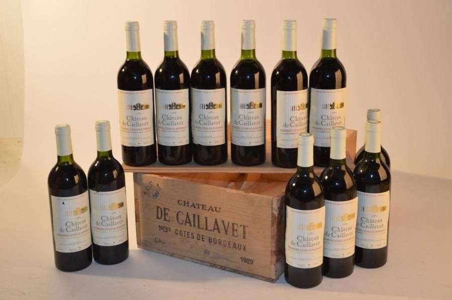 12 B CHÂTEAU DE CAVAILLET (Caisse Bois) 1 H.E| T.L.B. sinon mieux| e.l.a. 1ères Côtes de Bordeaux 1989