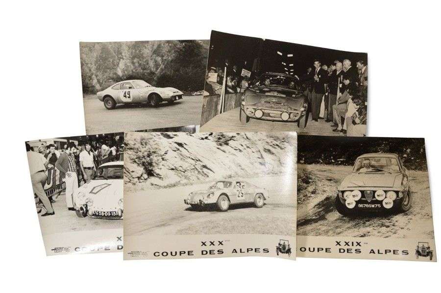 Ensemble de 5 photos de la 30ème coupe des Alpes 1969, VINATIER sur ALPINE