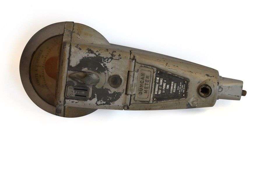 Tête d'horodateur DUNCAN METER en métal Etat d'usage, manques H: 48 - L: 2