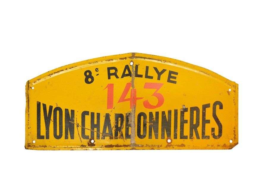 Plaque 8ème rallye Lyon Charbonnières Concurrent n°143 1955 état d'usage