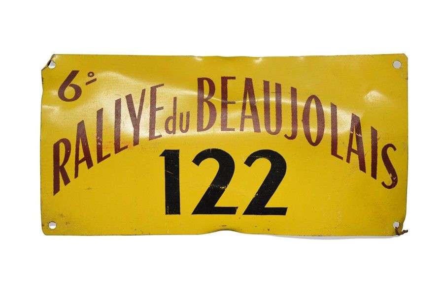 Plaque 6ème Rallye du Beaujolais, circa 1950 concurrent n° 122, état d'usage