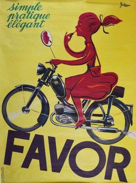 Affiche Cycles Favor Signée Bellenger Pliures et dechirures légères 145 x
