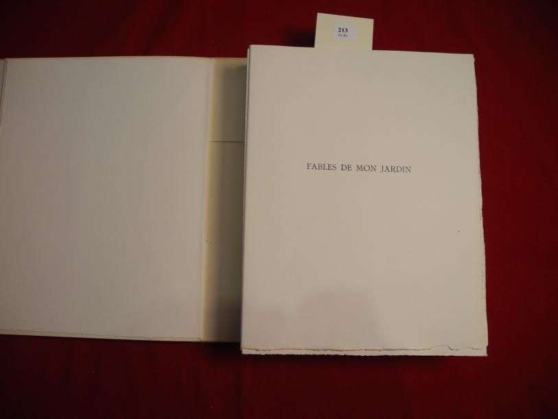 Fables de mon jardin. Paris, les Bibliophiles franco-suisses, 1949. 1 vol. in-8. En feuillets, sous couverture imprimée, sous étui et emboitage. Exemplaire n°4, imprimé pour Monsieur Georges Barbey. Tirage limité à 120 exemplaires numérotés. Orné de pointes sèches originales de Camille Berg.