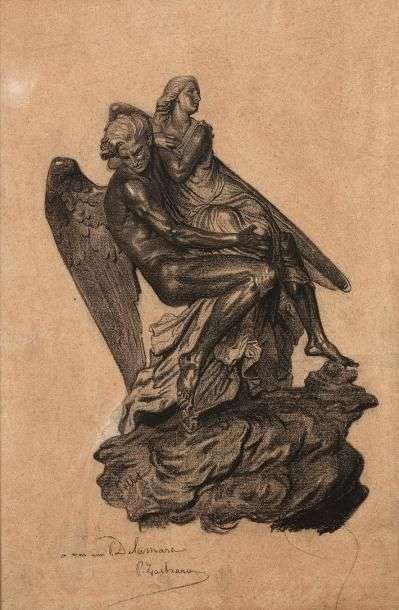 Le temps enlevant la vérité Fusain, signé et dédicacé en bas à gauche 41 x 27 cm