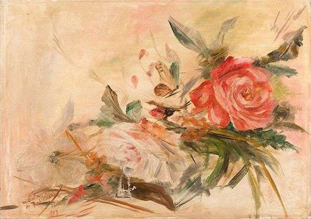 Jeté de roses Huile sur toile, signée en bas à gauche 46 x 65 cm Accidents sans cadre