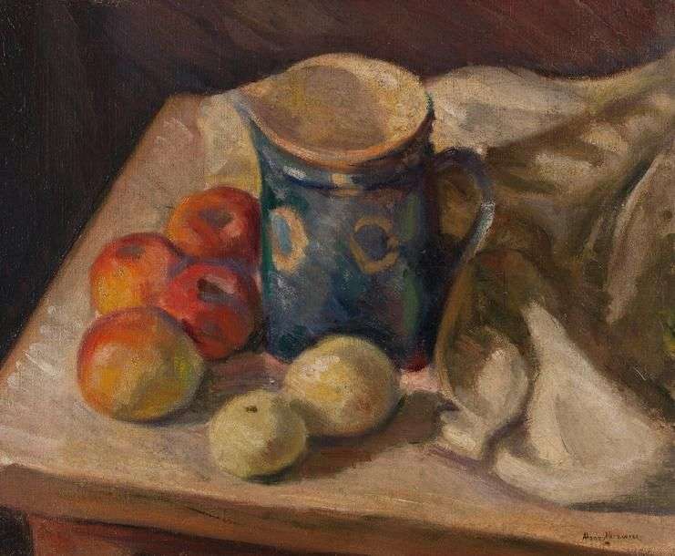 École polonaise Nature morte aux fruits Huile sur toile, signée en bas à droite 38 x 46 cm
