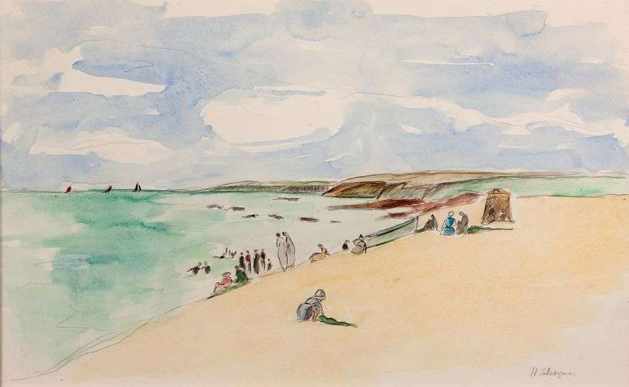 Sur la plage Aquarelle, signée en bas à droite, porte au dos un n°I373B 33 x 54 cm à vue Un certificat de Monsieur Pierre Lebasque, fils de l'artiste, sera remis à l'acquéreur. Provenance: Vente du 20 juin 1988, lot n°59 par Maître Francis Briest, Paris
