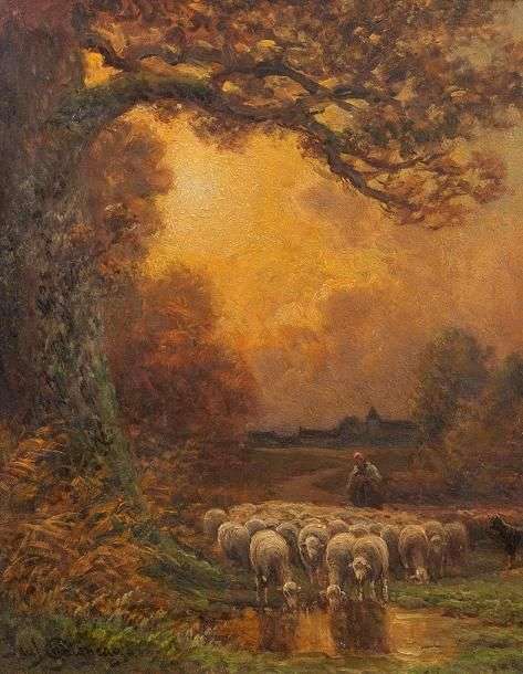 Le troupeau Huile sur panneau, signée en bas à gauche 27 x 22.5 cm