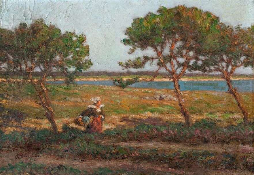 Bretonne au bord de la mer Huile sur toile, signée en bas à gauche 46 x 65 cm sans cadre