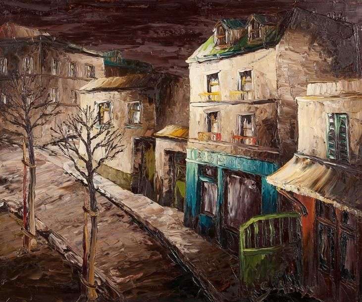 Rue Huile sur isorel, signée en bas à droite 54 x 65 cm