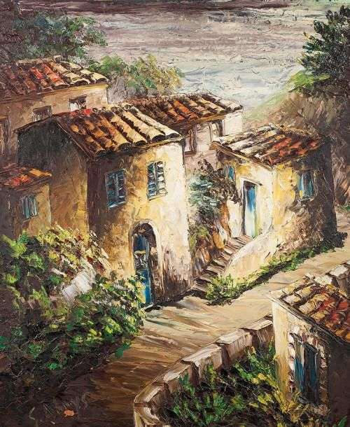 Le hameau Huile sur isorel, signée en bas à gauche 65 x 54 cm