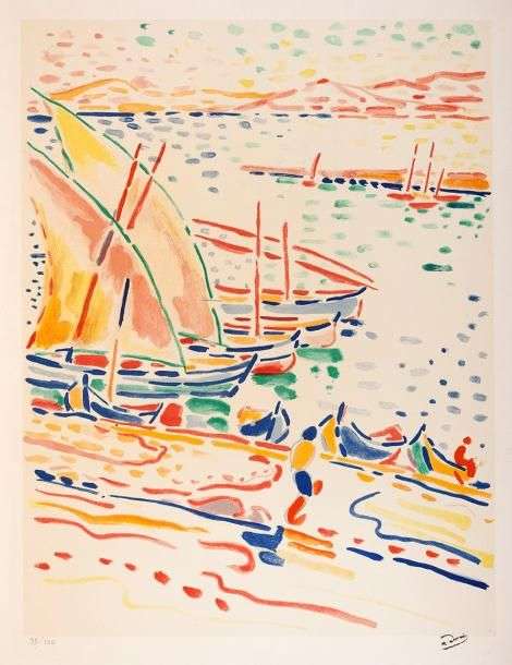 Bateaux à Collioure Lithographie n°99/100, contresignée en bas à droite 55.5 x 44 cm sans cadre