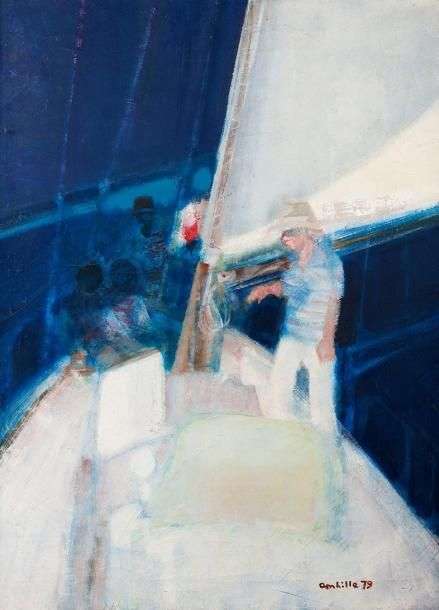 L'artimon Huile sur toile,signée et datée en bas à droite, contresigné et titré au dos 81 x 60 cm (*)