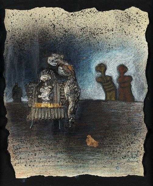 Nativité Technique mixte sur papier, marqué au dos du cachet de la vente Ackermann par Maître Claude Robert 52 x 43 cm provenance: vente de l'atelier par Maître Claude Robert entre 1984 et 1986
