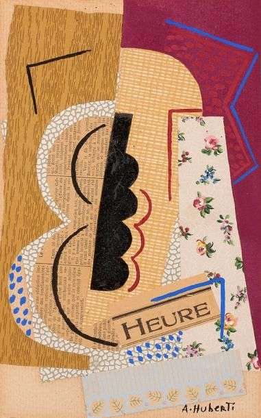 Composition à la guitare Technique mixte et collages sur papier, signé en bas à droite 31.5 x 20 cm