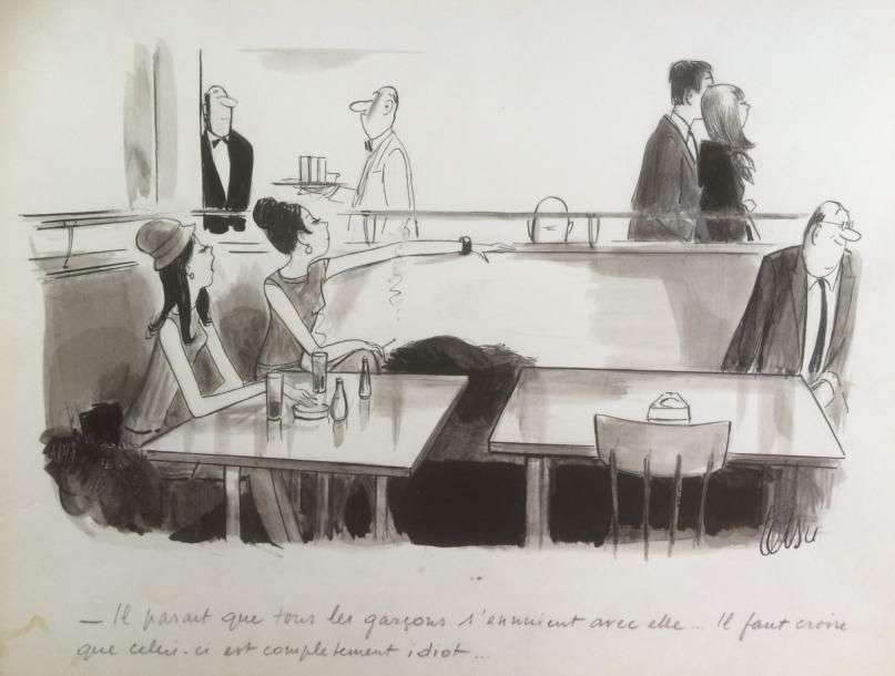 Il paraît... Crayon, encre et lavis sur papier, signé en bas à droite 25 x 32.5 cm