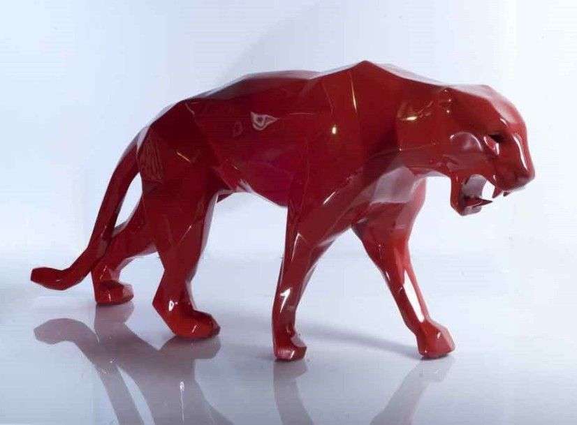 Panthère Born Wild Polyrésine rouge et aluminium, signée et numérotée 8/8 32 x 73 cm