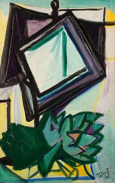 Composition au miroir dans l'atelier 45, Huile sur toile, signée et datée en bas à droite 65 x 41 cm sans cadre