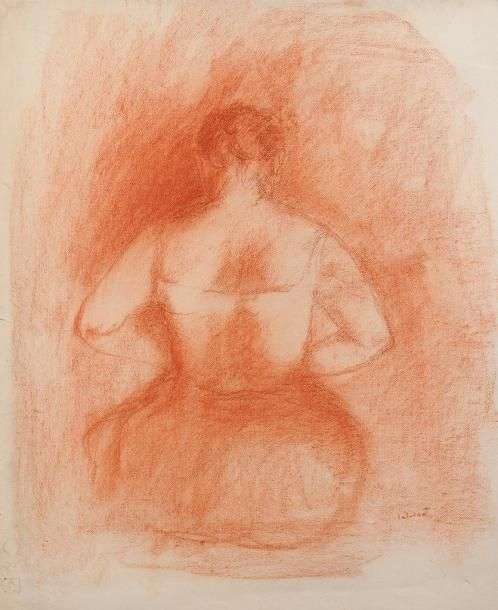 Femme au corset de dos Sanguine sur papier, signée en bas à droite 55.5 x 46 cm à vue