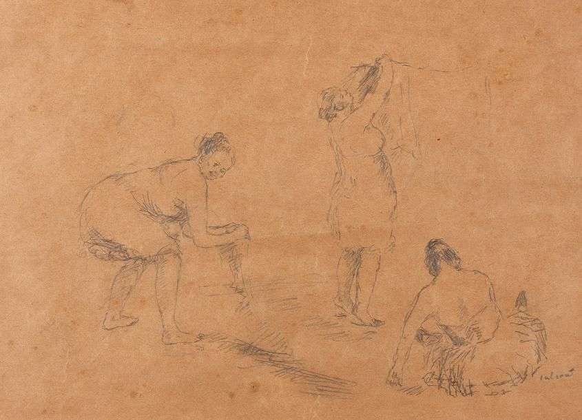 Etude de lavandières Crayon sur papier, signé en bas à droite 21.5 x 30 cm à vue