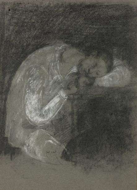 Le dormeur Pastel, signé en bas à gauche 38.5 x 28 cm à vue Provenance: Etiquette André chenu mentionnant la galerie Benezit