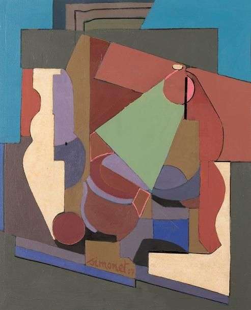 Composition violette, 07 Huile sur toile, signée et datée en bas au milieu 55 x 46 cm