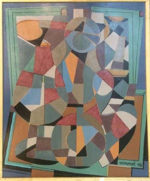 Composition cubiste au vase, 03 Huile sur toile, sgnée et datée en bas à droite 65 x 54 cm