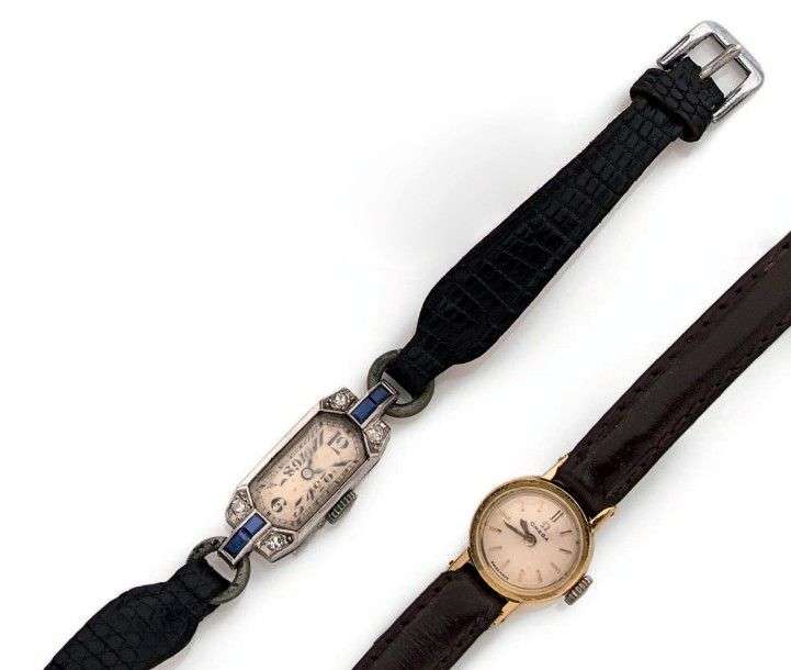 Lot de 2 montres OMEGA en or jaune mécanique. Anonyme en or gris. Poids total brut 22gr.