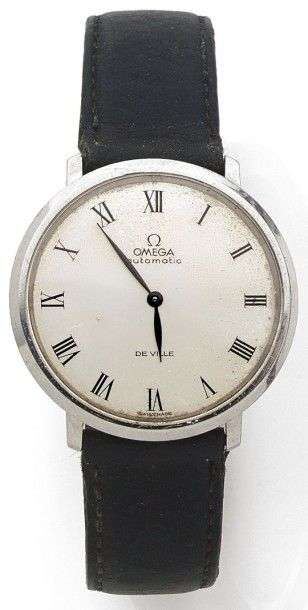 Modèle rond homme en acier. Cadran argenté, chiffres romains, aiguilles bâtons. Mouvement automatique. Manque le remontoir, dans l'état. Diam 35mm.