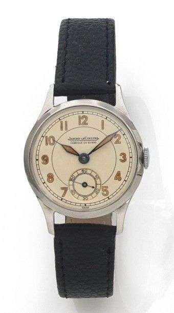 Modèle homme rond en acier. Cadran argenté, chiffres arabes, aiguilles squelettes. Mouvement base 450, freq 18000 alt/h. Petite trotteuse à 6h. Boitier 2 corps. Fonctionne. Diam 31mm.