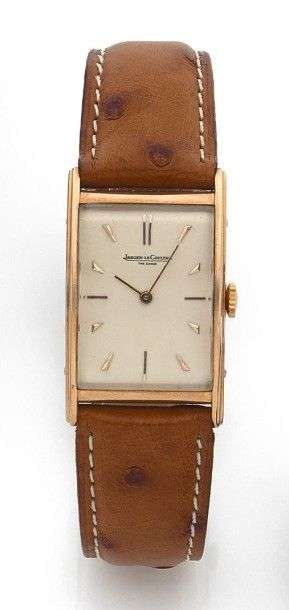 Modèle homme rectangulaire en or. Cadran argenté, index appliques et aiguilles bâtons. Mouvement cal 11U, freq 18000 alt/h. Boitier 2 corps. Fonctionne. Poids brut 31,9 gr. Dim 23x30mm.