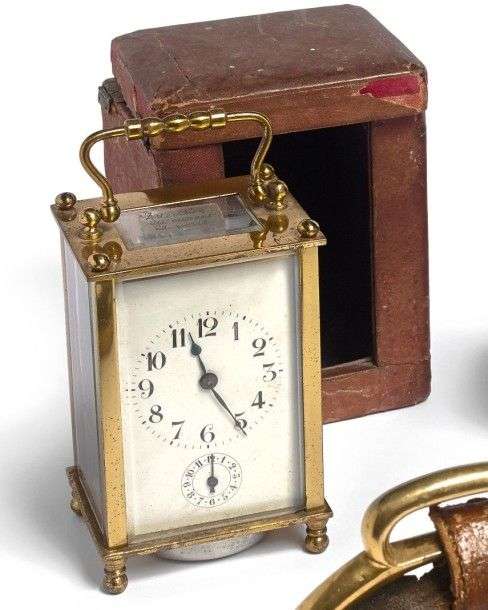 Pendulette d'officier 4 glaces réveil. Manque une vitre. Vendue en l'état.